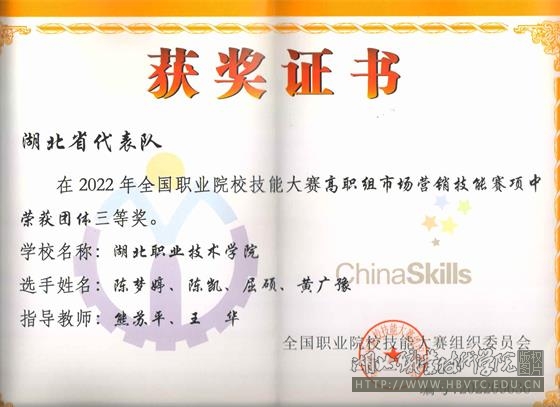 8月25日至26日,“中银杯”全国职业院校技能大赛高职组市场营销技能赛项在甘肃兰州举行,来自全国各省市自治区的56支代表队、222名选手同台竞技、交流互鉴,由球王会体育财经与旅游学院熊苏平、王华老师指导,球王会体育市场营销专业黄广豫、陈梦婷、陈凯、屈硕同学代表湖北队参赛荣获团体赛三等奖的好成绩。