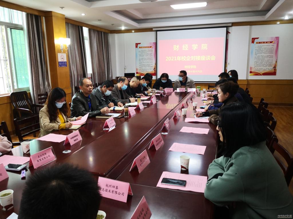 2021年10月16日上午,为进一步搭建学生就业平台,促进与企业的交流合作,球王会体育邀请了杭州四喜信息技术有限公司、圣贤优农生态农业湖北有限公司、武汉洁伶卫生用品有限公司、IDG 朗实教育等十余家企业代表在文华楼2楼会议室召开了2021年校企对接座谈会,会议由球王会体育院长、党总支书记徐斌华住持,球王会体育管理团队成员、教研室主任参加了此次会议。