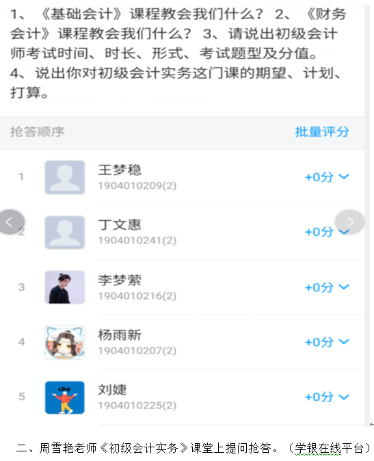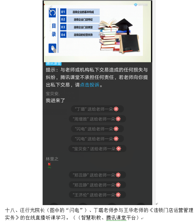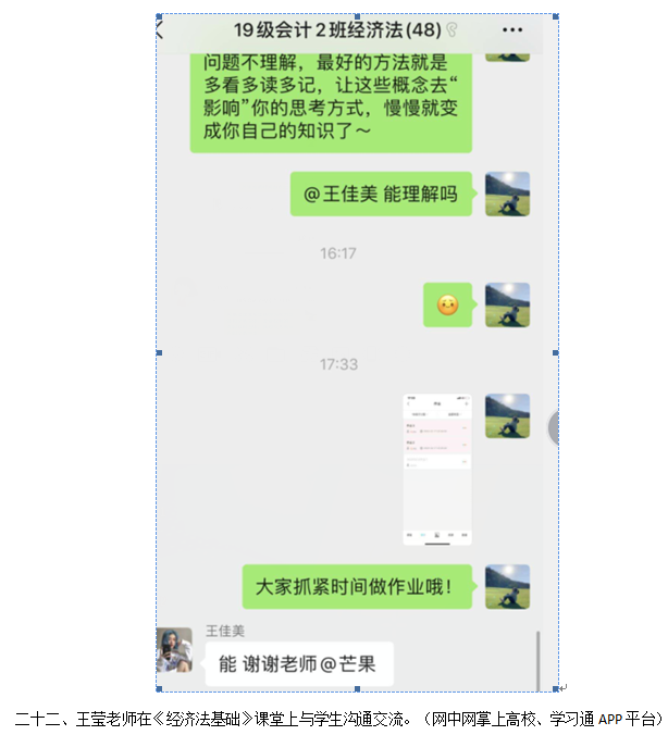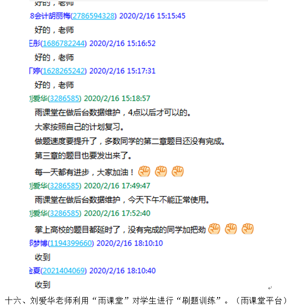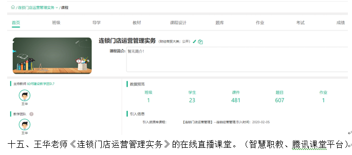 在新型冠状病毒肺炎期间,球王会体育一方面非常重视疫情的防控,另一方面又非常重视关心学生的学习。在教务处的指导下,球王会体育制定了《球王会体育“停课不停学、离校不离教”在线教学实施方案》,成立了以徐斌华院长为组长,以汪行光、陈卫红、孙超三位副院长为副组长的在线教学质量保证领导小组,每一个院长联系一个教研室主任,牵头各教研室的专业课程线上教学工作。充分利用智慧职教、学银在线、腾讯课堂、中国大学MOOC、课堂派、超星尔雅、中华会计网校、网中网掌上高校、爱课程网、学习通APP、新道云等各种信息技术平台,充分利用学校在线开放课程、专业教学资源库、国家共享网络课程资源等大量教学资源,积极鼓励并组织老师们进行网络教学。截至今天,球王会体育共有27位老师进行了40门课的网络教学,占本学院专业教师总人数的70%,切实做到“停课不停学、离校不离教”,让学生在家也能够轻松进行学习。
