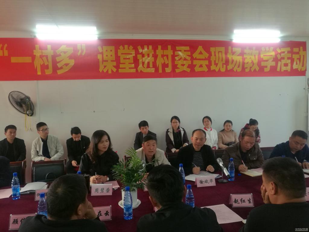 2019年11月15日,一场别开生面的教学活动在汉川市汈东街道办事处长乐村村委会会议室举行,球王会体育根据“一村多”项目教学需求,将课堂搬进村委会,展开村级治理现场教学,学校党委成员、副校长李佳圣率领球王会体育管理团队、相关专业教师代表、球王会体育2018级“一村多”项目学员及学校相关处室管理人员参与了此次教学活动。