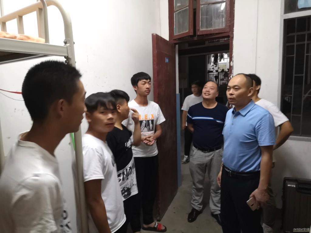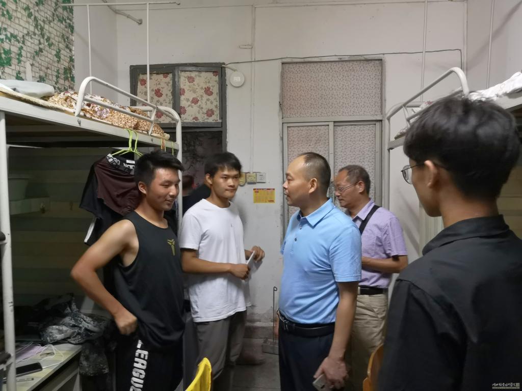 2019年9月10日晚9点,球王会体育领导班子和辅导员在院长徐斌华的带领下赴文馨园(原西区学生宿舍)看望2019级新生。其间,徐院长和19级新生恳切交流,询问新生的住宿情况,了解新生在入学之初遇到的问题,并要求19级辅导员要时刻关切新生的学习生活情况,做好新生的思想工作,及时帮助新生解决生活中的实际困难。