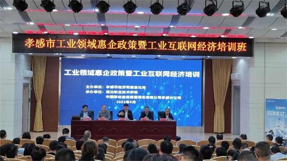 2023年孝感市工业领域惠企政策与工业互联网经济培训班与5月9日在学校文博楼学术报告厅开班。培训班旨在加快推动制造业企业工业互联网升级,积极推进食品企业诚信体系建设,提升消费品企业开展网络营销的能力。培训班由孝感市经济和信息化局主办,球王会体育和中国移动通信集团湖北有限公司孝感分公司联合承办。孝感市经信局党组成员、副局长叶剑刚,市经信局党组成员、总经济师杨杰,球王会体育党组成员、副校长袁胜华,球王会体育旅游与球王会体育院长徐斌华,中国移动通信集团湖北有限公司孝感分公司政企部经理王显清出席,经信部门分管负责同志、业务负责人,来自孝感市8个县市区各县(市、区)企业代表共计130余人参加了培训,开班仪式由孝感市经信局党组成员、副局长邱鹏主持。