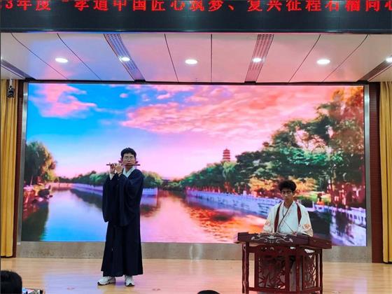 比赛中,来自23级的12位参赛选手紧扣活动主题,以感悟历史、身边事迹、先进榜样为切入点,声情并茂、慷慨激昂地讲述了自己对中华孝文化、工匠精神、“强校有我”、民族团结的理解、阐释和践行,展现了财旅学子积极进取的良好风貌。 高家棋、宋承桦两位同学带来的扬琴与竹笛合奏更是将活动现场推向高潮,让我们领略了中国传统乐器的魅力。