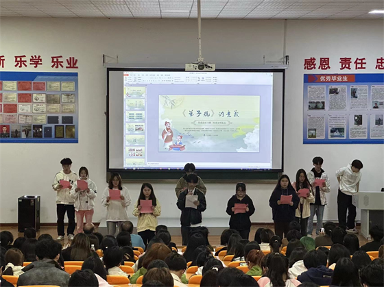 为弘扬国学文化,丰富学生精神世界,涵养学生人文品行,3月28日晚上,财经与旅游学院在文华楼阶梯教室举办了“国学课堂”启动仪式。湖北宏阳新型建材股份有限公司董事长王水华、湖北宏阳新型建材股份有限公司总经理王珍、孝昌宏阳水泥有限公司总经理王望芬、学校原工会主席张占华教授、财经与旅游学院党总支书记罗安文、学工副院长陈卫红、全体辅导员及300余名学生代表等参加了启动仪式。