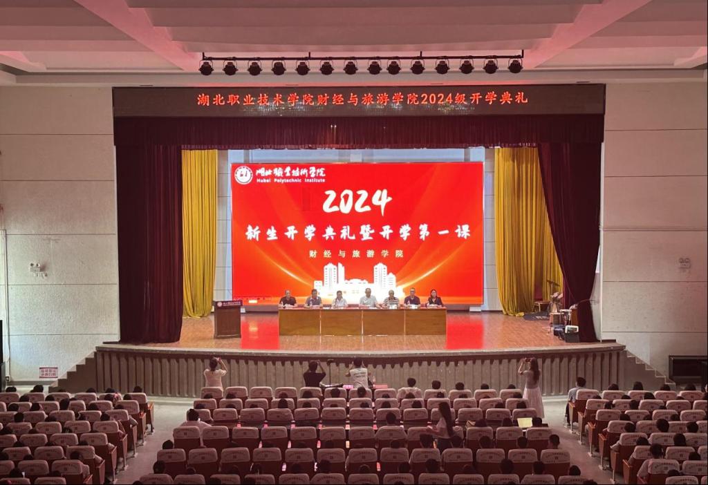 财经与旅游学院院长徐斌华、党总支书记罗安文、学工副院长陈卫红、组织员黄曙光、学工办主任王峰、团总支书记张星月、学工助理柳春祥、全体专兼职辅导员以及2024级全体新生参加了此次典礼。开学典礼由财经与旅游学院学工副院长陈卫红主持。
