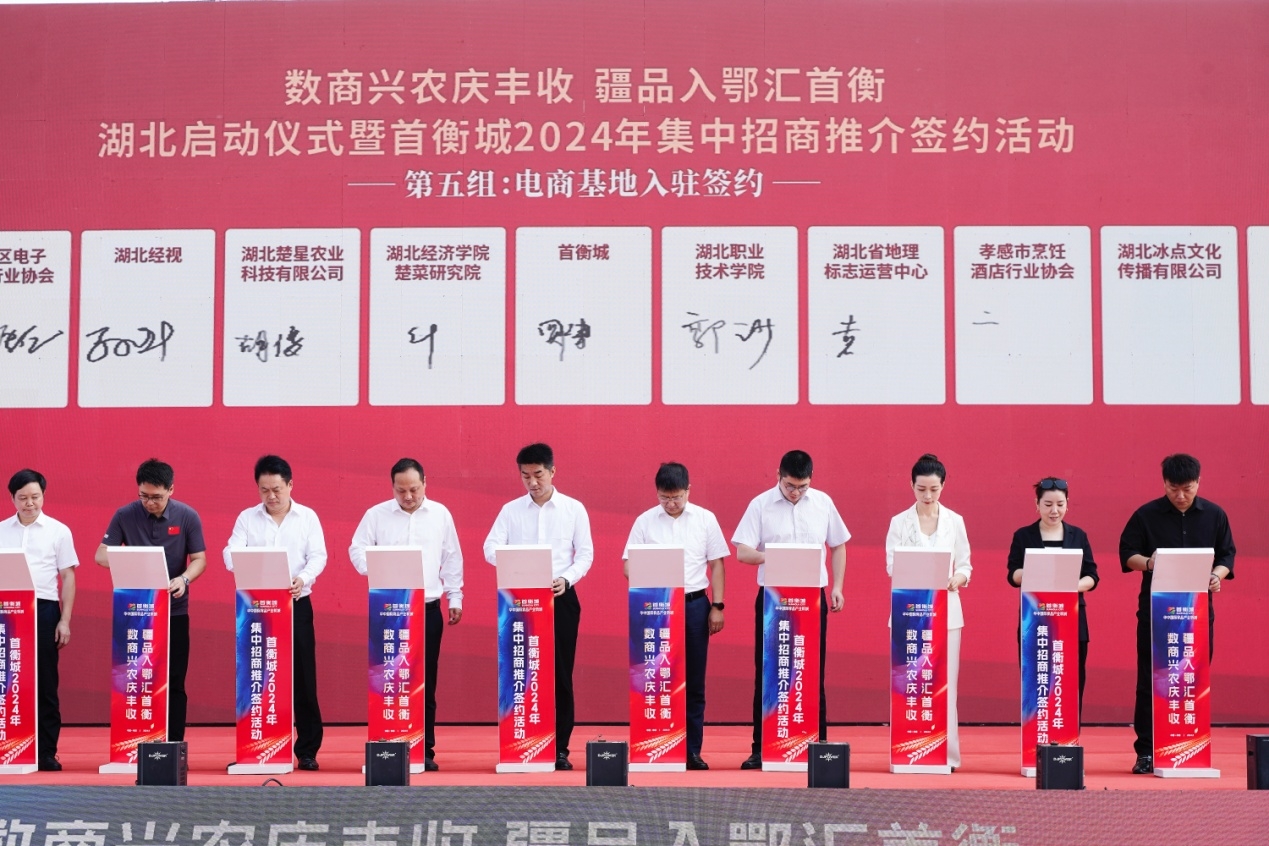 9月28日上午,由湖北省商务厅、孝感市人民政府主办,首衡集团联合孝感市商务局、孝南区人民政府承办,“数商兴农庆丰收 疆品入鄂汇首衡"湖北启动仪式暨首衡城2024年集中招商推介签约活动在孝感首衡城举行。校长郭沙应邀出席活动。来自湖北省、新疆维吾尔自治区、新疆生产建设兵团等地领导,湖北省各市州商务局主要负责人及云南省商务厅、四川省攀枝花仁和区农业农村局,“疆品入鄂”产销对接活动企业代表、湖北省知名电商企业及网红达人等约2000人参加。财经与旅游学院近200名师生代表参加了此次活动。