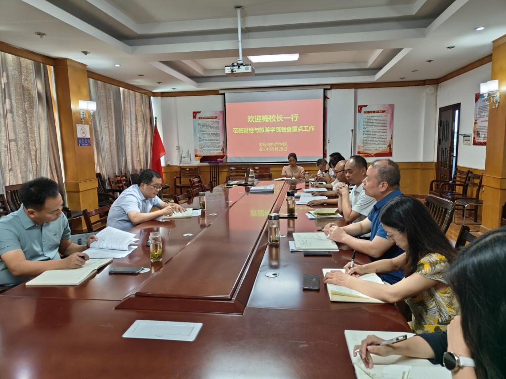 梅校长对财经与旅游学院重点工作提出了指导意见。梅校长强调,要深入学习贯彻党的二十大和二十届二中、三中全会精神,全面贯彻党的教育方针,严格落实重点工作督查要求,扎实做好各项工作,确保各项重点工作稳步推进,实现学校高质量发展。