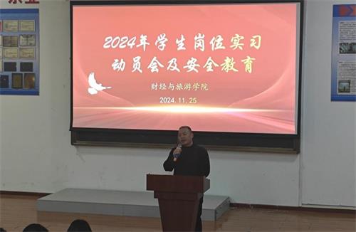 为确保财经与旅游学院实习工作扎实有效开展,学院提前谋划、及早部署,于2024年11月25-26日召开了2024年学生岗位实习动员暨安全教育大会,即将实习的700多名学生参加会议。学院副院长汪行光、辅导员高晓茹、王亚军等参加会议,会议由副院长陈卫红主持。