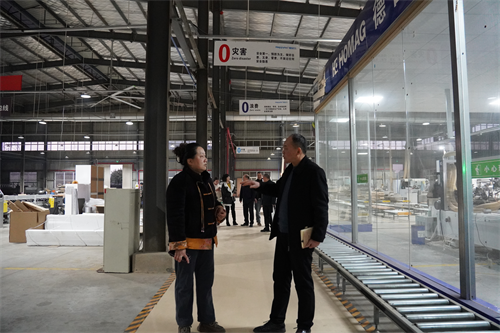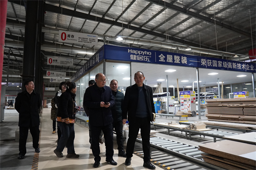 随后,徐斌华一行参观考察了华中森工产业园,深入园区健居乐公司等多家建材企业,从板材生产起始点到全屋整装(墙板、木门、衣柜柜类)整个生产流程展开了细致的考察,与生产一线工作人员进行交流,深入了解园区公司生产、运营及销售状况,并对产品线下线上营销现状,产品“走出去”国外销售情况进行了了解。