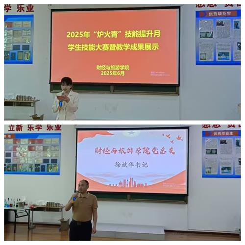 2025年5月—6月,财经与旅游学院“炉火青”技能提升月—技能大赛暨教学成果展示活动圆满举办。本次活动以“实践促成长,技能铸未来”为鲜明主题,旨在展示学院的教学成果,为学生搭建淬炼专业能力、夯实技能根基的实战舞台,大力弘扬“荆楚工匠”精神,在校园内掀起一股“比学赶超”的热潮,有效提升学生的职业自信与认同感。