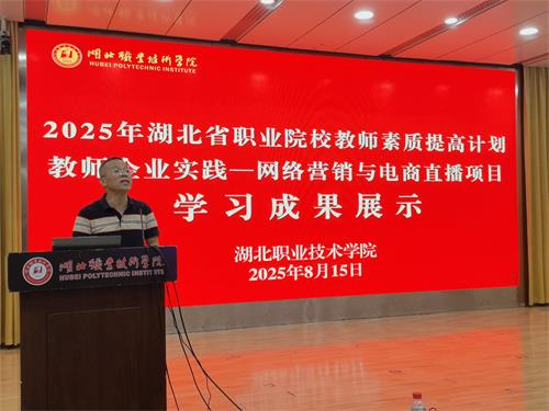 盛夏时节,硕果盈枝。8月15日在西区文博馆学术报告厅,授课专家代表黄享苟教授、学校继续教育学院院长丁浙英、财经与旅游学院党总支书记徐斌华等领导、嘉宾、企业导师以及60名参训学员齐聚一堂,共同见证湖北省2025年职业院校教师素质提高计划教师企业实践—网络营销与电商直播项目圆满收官。学校党委委员、副校长杨立明出席会议并讲话。会议由财经与旅游学院院长曹艳芬主持。